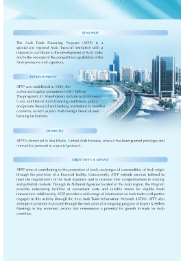 transactions. Additionally, ATFP provides a wide range of information on Arab trade to all parties